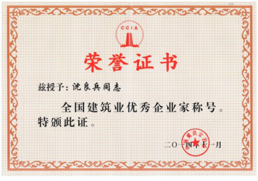 沈良兵主席荣获全国建筑业优秀企业家