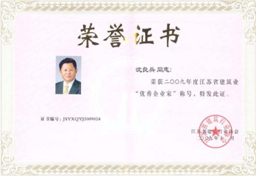 沈良兵主席荣获09年省建筑业“优秀企业家”称号