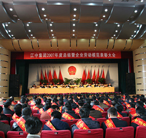 2008年2月11日上午,江中集团全体领导干部、管理人员和职工代表1000多人欢聚在培训中心礼堂,隆重召开2007年总结暨企业劳动模范表彰大会。回顾总结2007年度各项工作,表彰奖励136名2006年至2007年度集团劳动模范和20个2007年度集团先进集体。