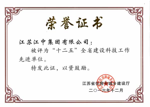 • 集团被评为“十二五”全省建设科技工作先进单位