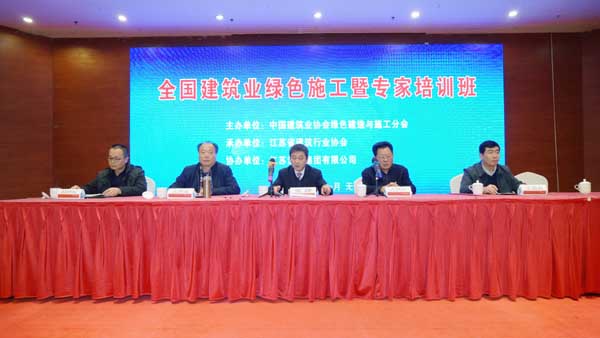 2016年26-27日,由中国建筑业协会绿色建造与施工分会主办、江苏省建筑业协会承办、江苏江中集团有限公司协办的全国绿色施工暨专家培训班,在无锡举行。集团董事长沈良兵应邀出席会议,并在主席台就坐。与会全体学员观摩了我集团施工的江阴澄星广场项目。集团总工程师、一公司总经理沈世祥为学员讲授了绿色施工相关知识。