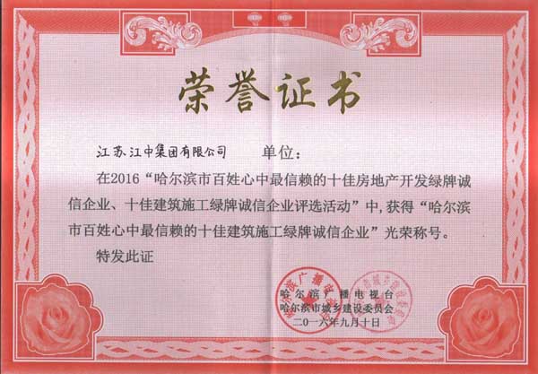 • 集团东北公司荣获哈尔滨市百姓心中最信赖的 “十佳建筑施工绿牌诚信企业”称号