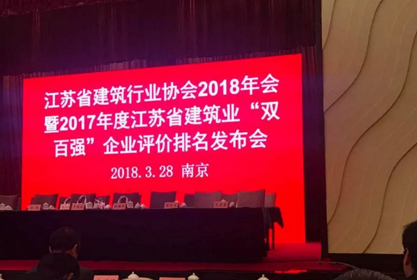 3月28日上午,江苏省建筑行业协会2018年会暨2017年度江苏省建筑业“双百强”企业评价排名发布会在南京隆重举行。