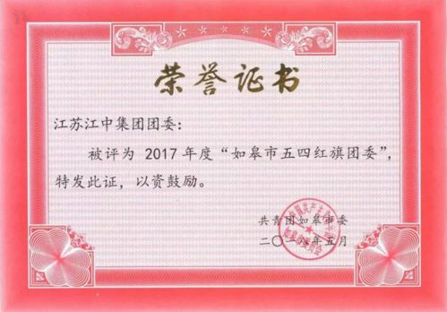 江苏江中集团团委获评“如皋市五四红旗团委”