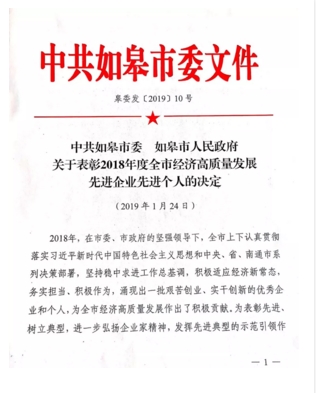 江中集团始终坚持创新与发展,2018年在各方面取得了可喜的成绩,集团定会珍惜荣誉,再接再厉,做好表率,更好地肩负起新时代赋予的使命和责任,在推动经济高质量发展的征程上再创佳绩,为奋力构建长江经济带战略支点重要支撑,开辟如皋高质量发展新境界再立新功!